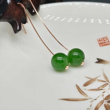 木紫珑 925银线和田碧玉耳环·绿 玫瑰金
