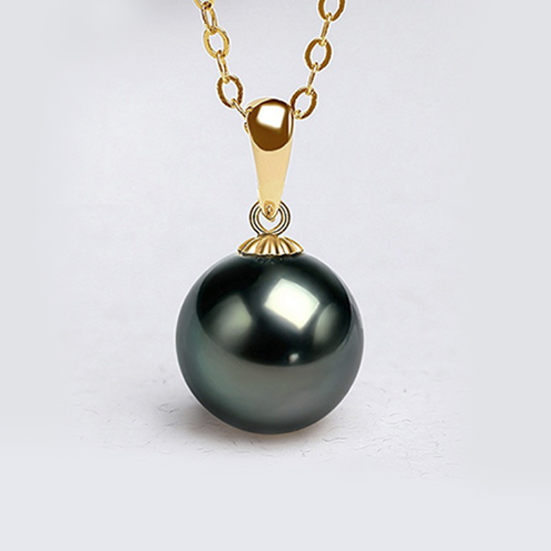 明益珠宝18K金黑珍珠吊坠9-10MM