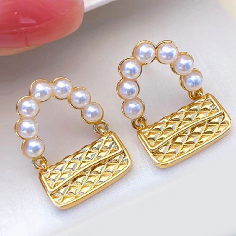 明益珠宝菱格纹包包珍珠耳钉