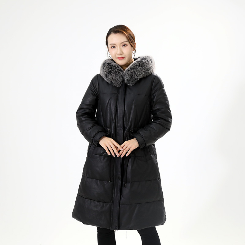 索弗莎奢华狐狸毛领绵羊皮鹅绒羽绒服