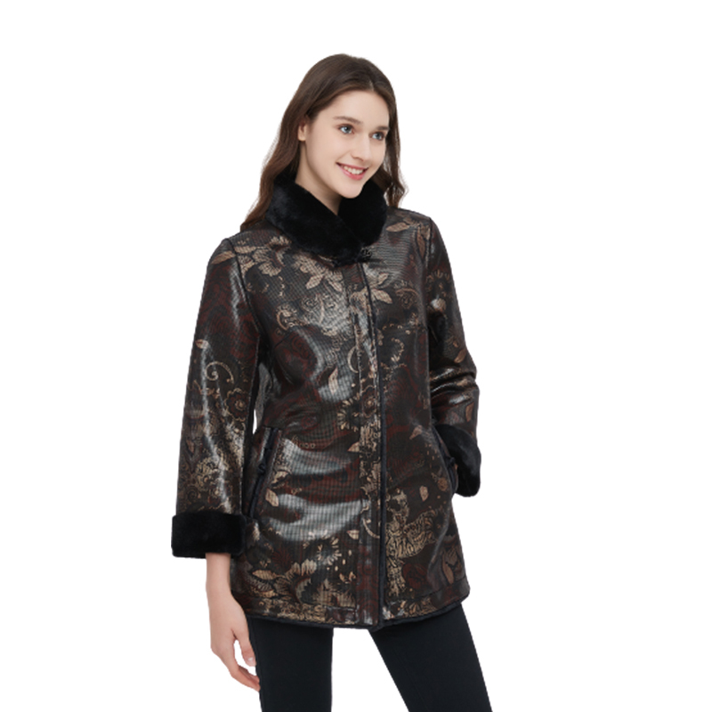 伊俪佳人浪漫烫金印花加绒外套·红咖色