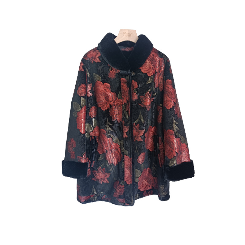 伊俪佳人浪漫烫金印花加绒外套·红绿花
