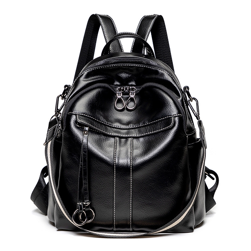 雀说时尚防盗双肩包女上新易搭复古油蜡皮多用背包休闲旅行包AL9855 L·大号-(油蜡皮)黑色