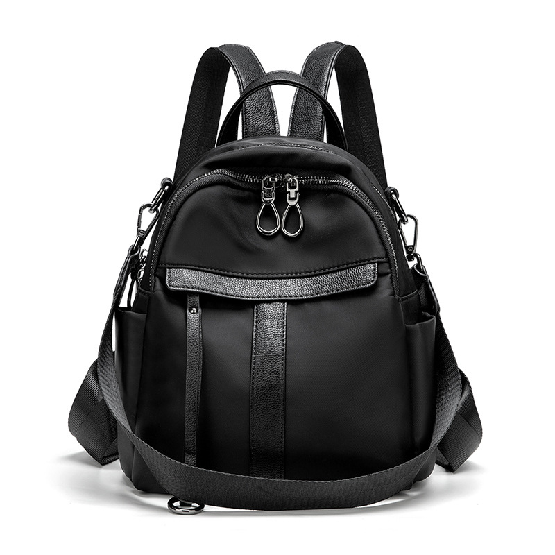 雀说时尚防盗双肩包女上新易搭复古油蜡皮多用背包休闲旅行包AL9855 L·牛津布-小号黑色