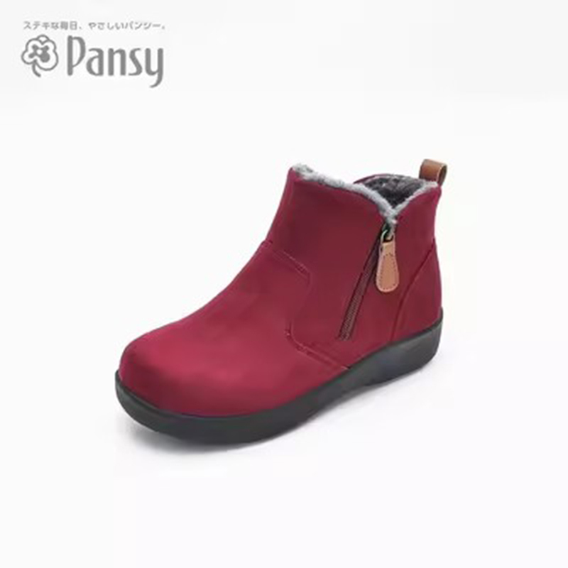 日本品牌pansy女士双拉链含羊毛休闲靴·酒红色