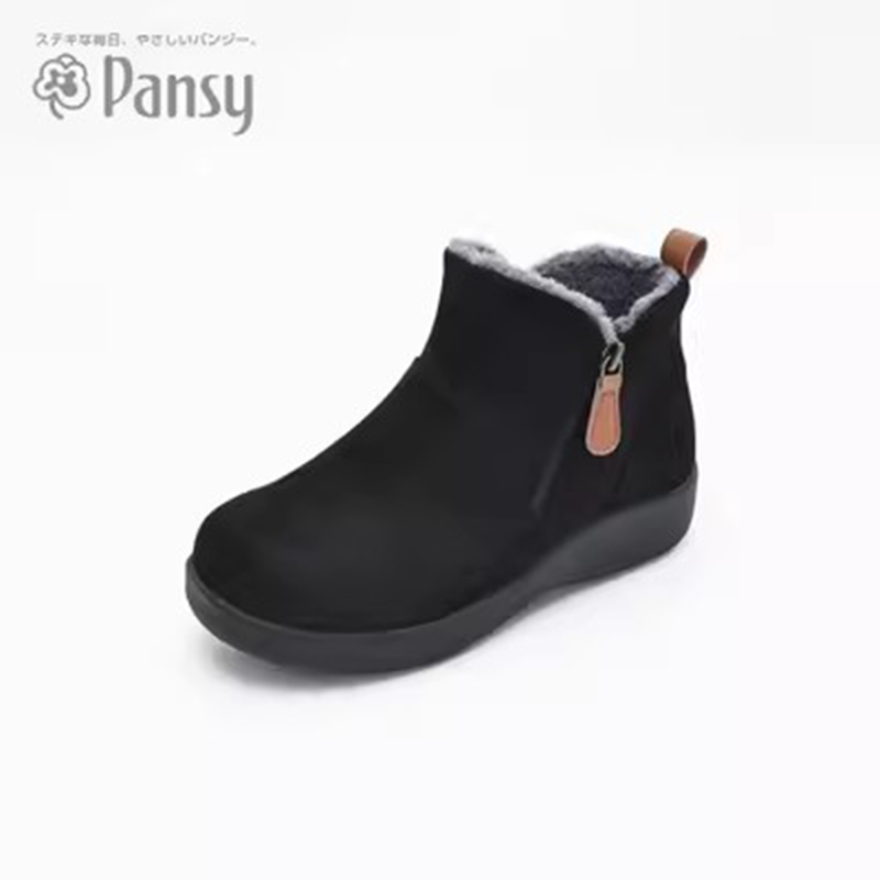 日本品牌pansy女士双拉链含羊毛休闲靴·黑色