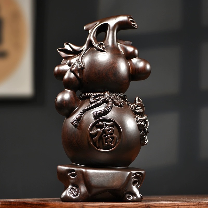 百年许氏 黑檀/花梨木如意福禄葫芦工艺品20cm