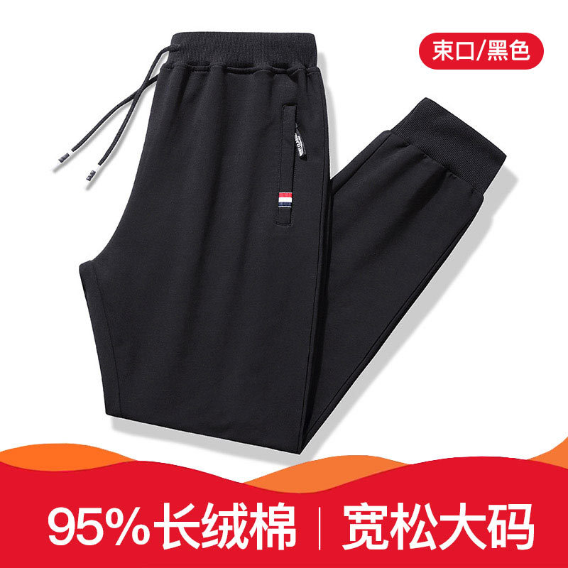 95棉松紧腰男士宽松休闲长裤1731#·束口黑色
