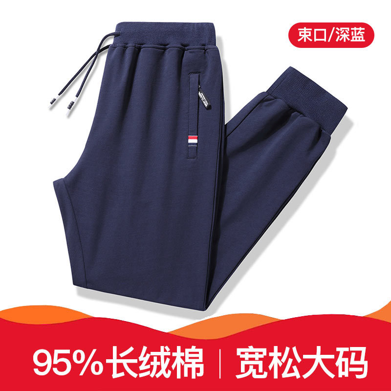95棉松紧腰男士宽松休闲长裤1731#·束口蓝色