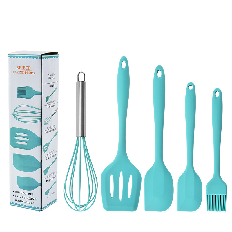 厨房用硅胶刮刀硅胶铲抹刀烘焙工具油刷家用厨房耐高温一体式刮刀·蓝色