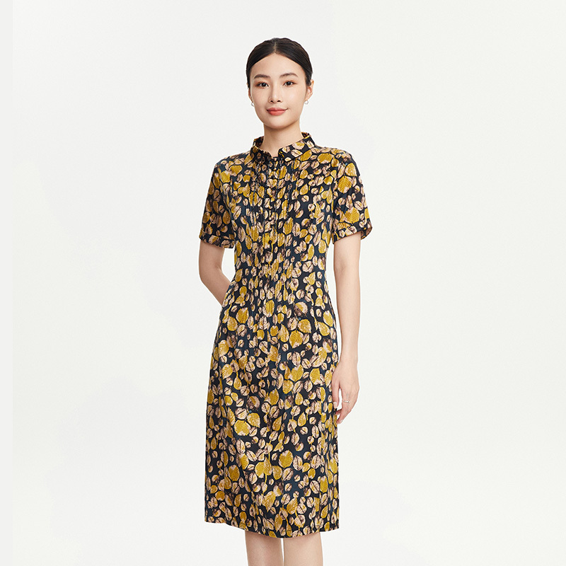 伊俪佳人山水国画桑蚕丝连衣裙·树叶花