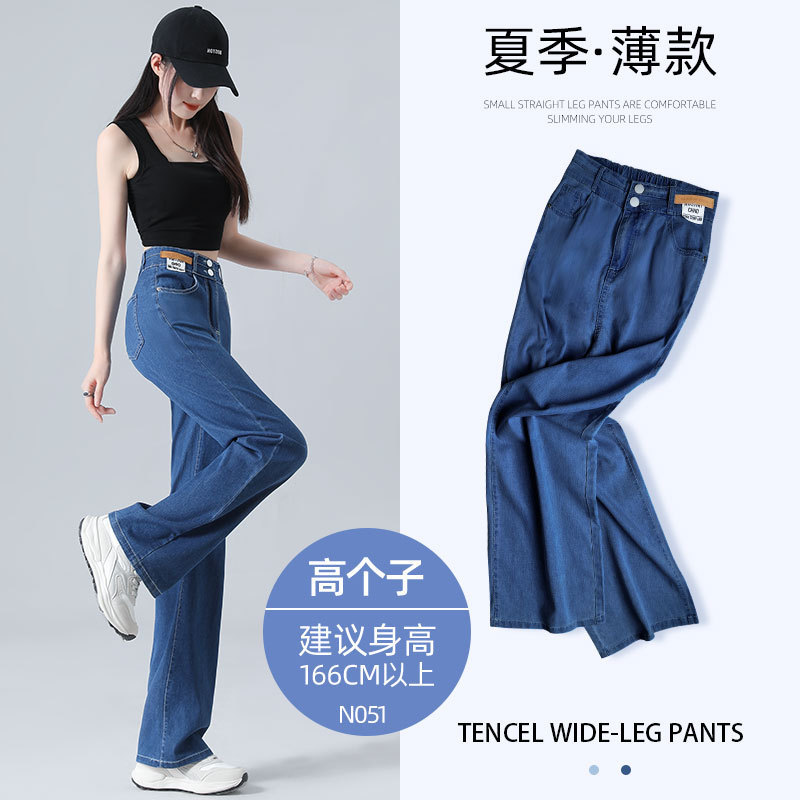 凉感冰丝轻薄软牛仔高腰阔腿裤052#·深复古-高个子