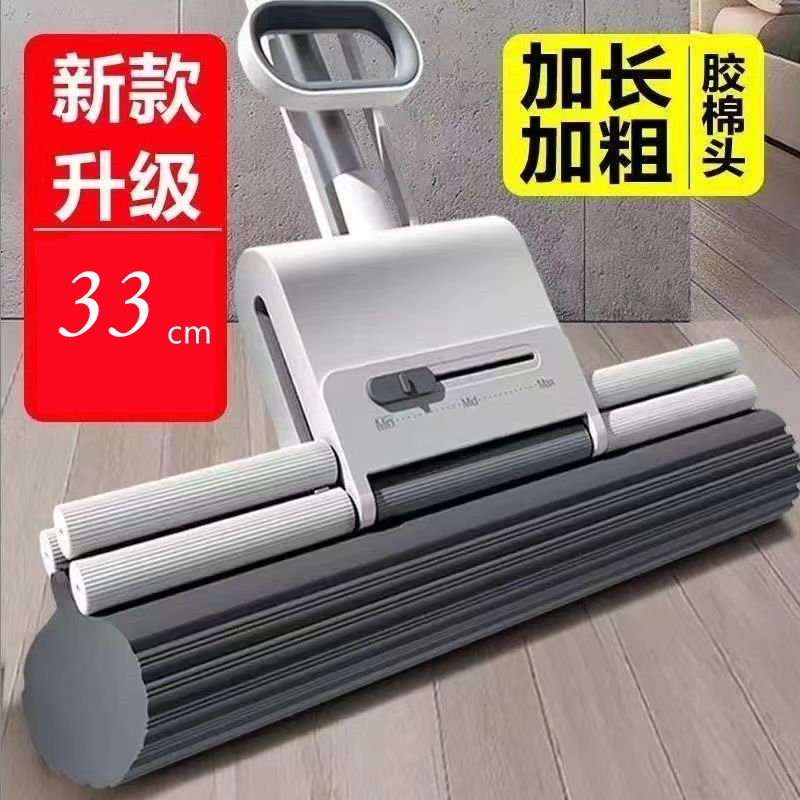 大卫M11胶棉拖把双滚轮式大号33CM免手洗胶棉拖把 海绵吸水地拖拖布免手洗