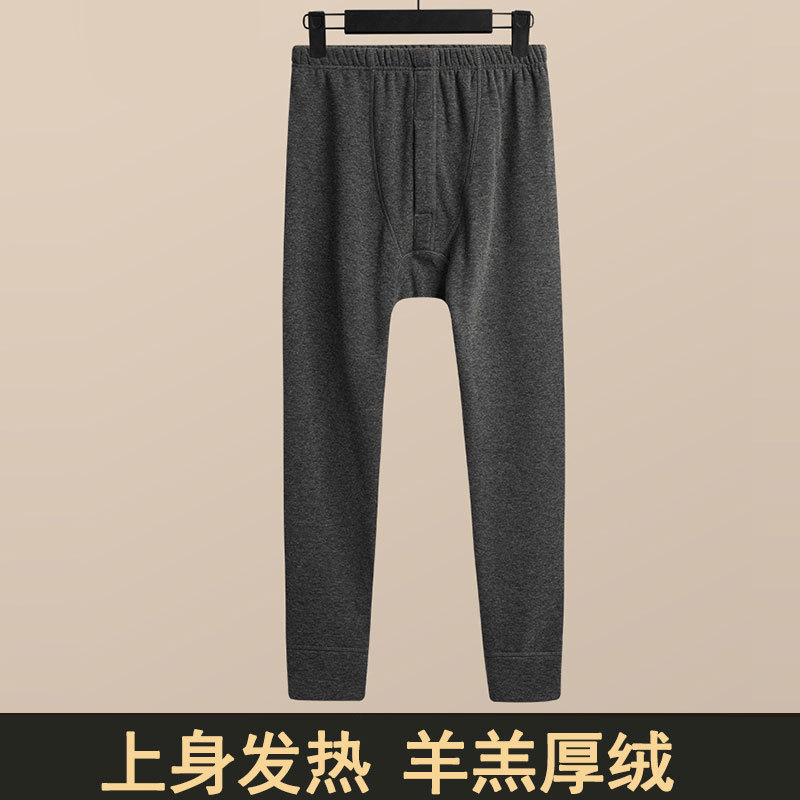 【反季清仓】 羊羔绒加厚男士圆领上衣/半高领上衣/保暖裤·保暖裤黑灰