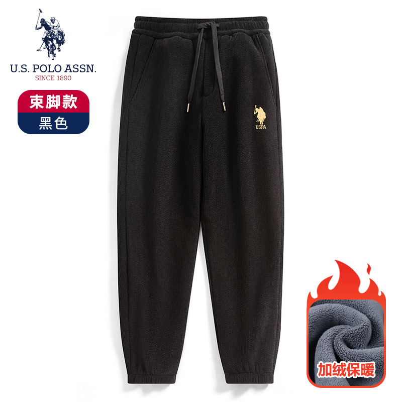 USPA男女同款舒棉条加绒卫裤K683·黑色【束口】