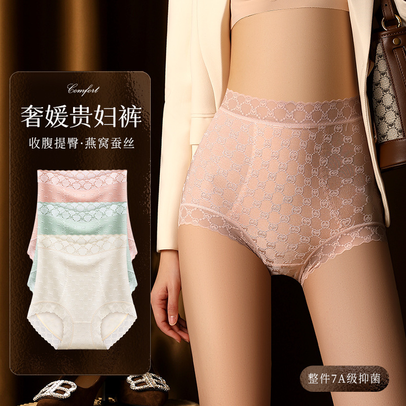 【桑蚕丝聚乳酸】韵梦兰蕾丝高腰收腹内裤4件组86411·颜色随机
