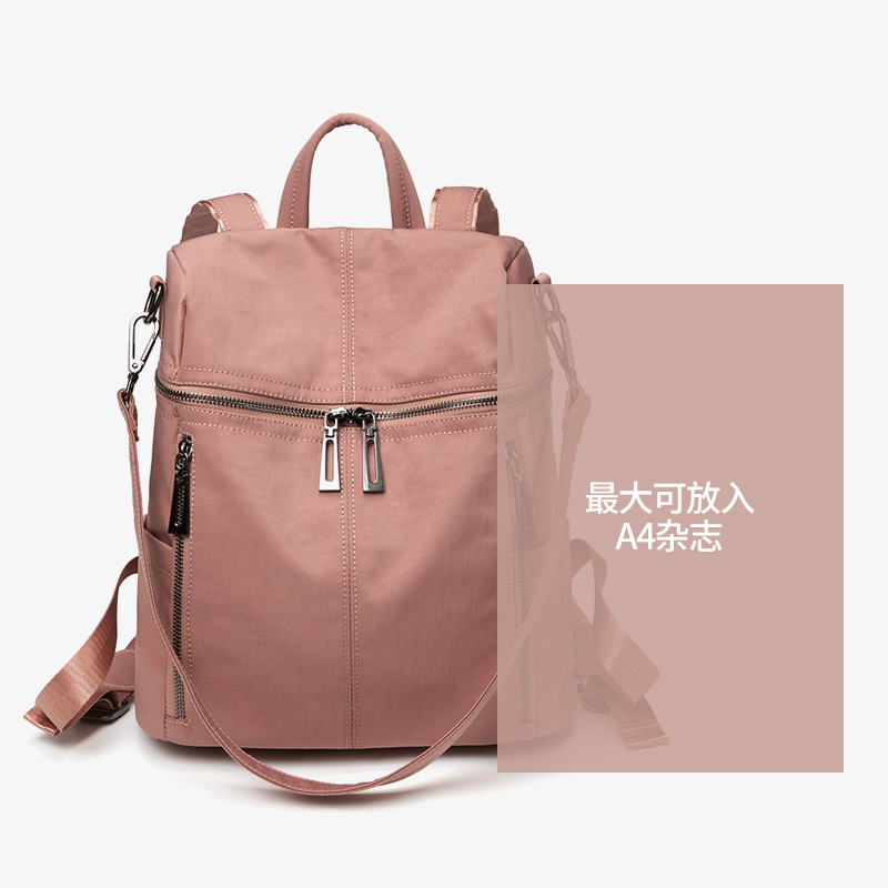 雀说 牛津布双肩包时尚大容量背包多用单肩包旅行包C3570·莫兰迪粉