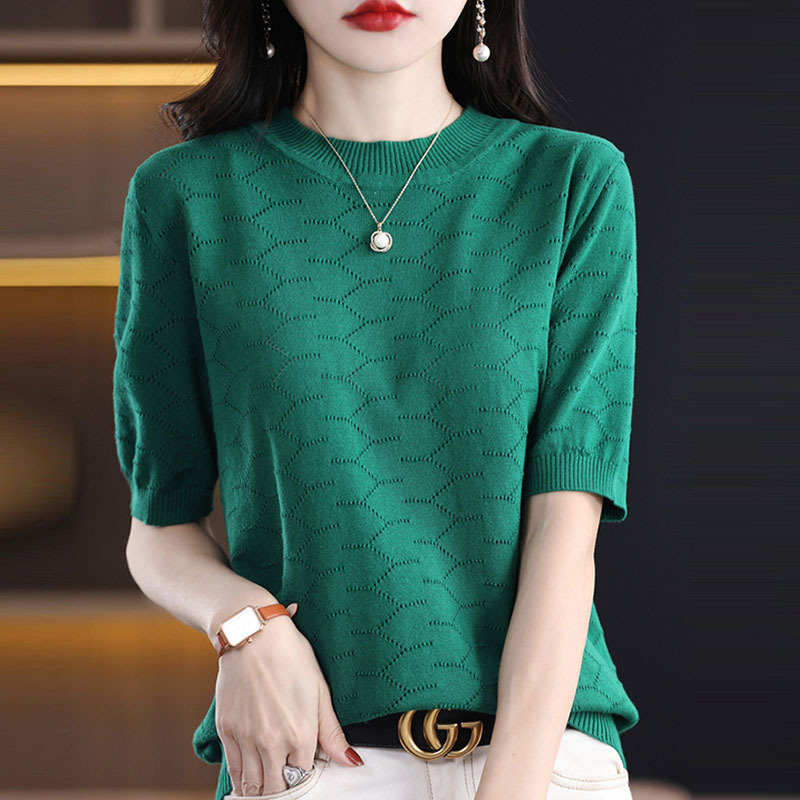 【爆款特价】100纯棉时尚镂空纹透气衬肤五分袖上衣·祖母绿