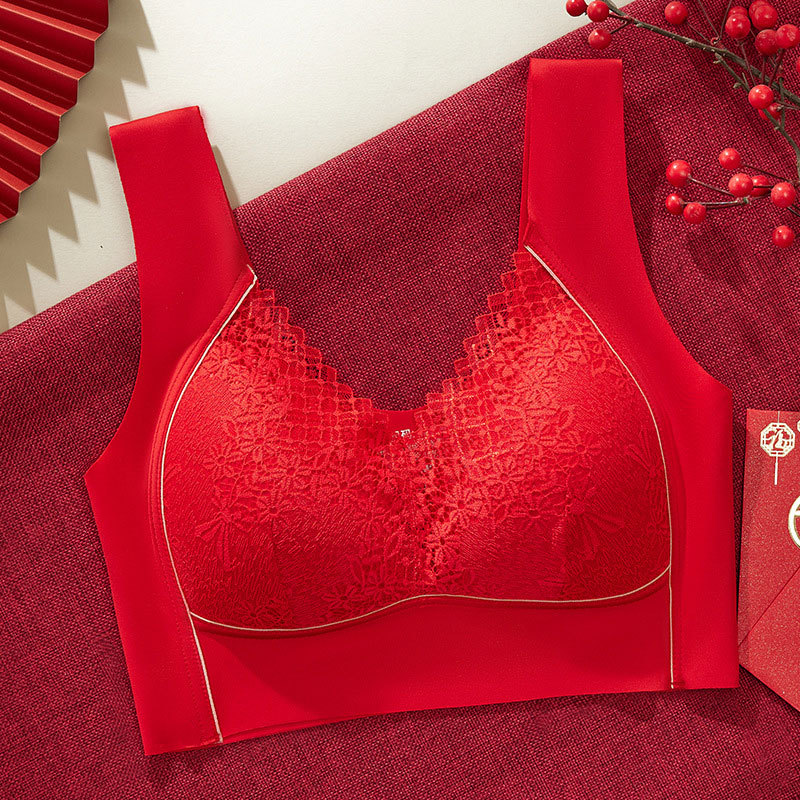 撞色蕾丝固定透气不跑杯零束缚内衣·红色