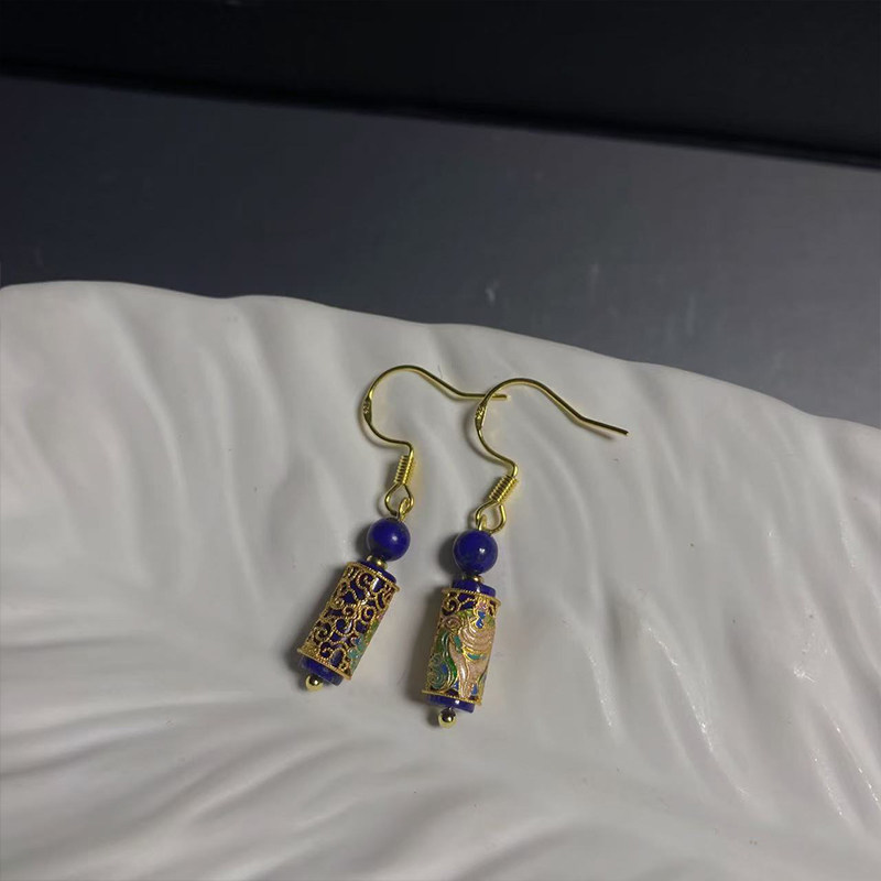 【卡世曼】青金石银镶珐琅掐丝耳环