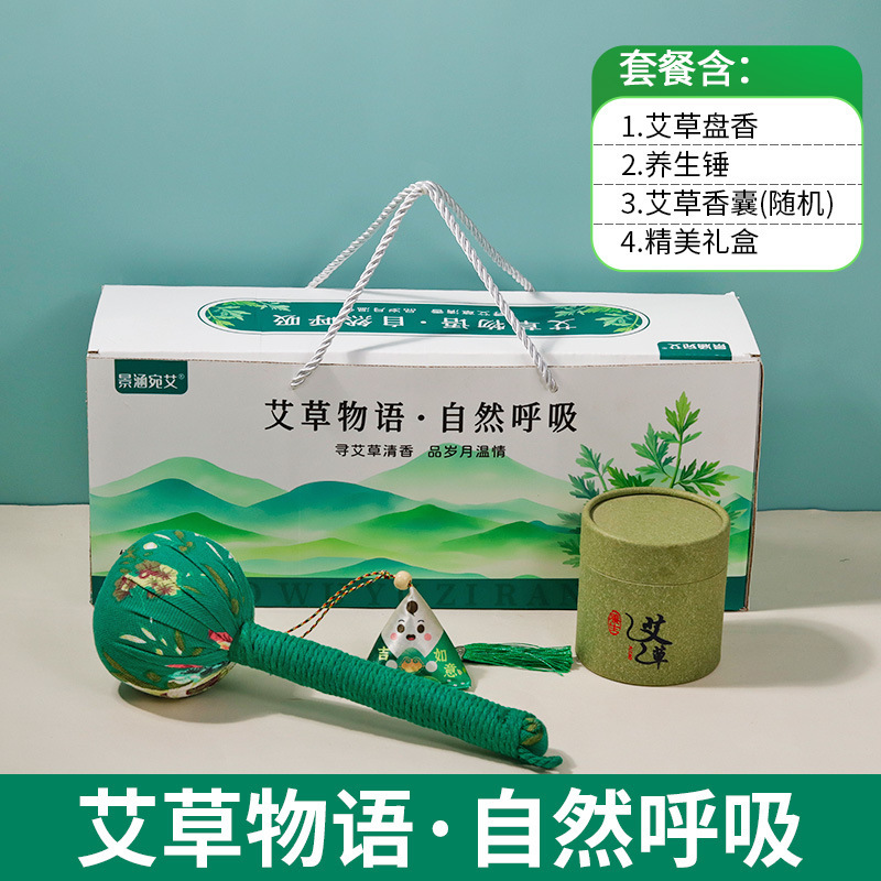 端午安康保险礼品艾草枕头礼盒装手养生会销香囊绿色伴手礼商务礼·养生锤+艾草盘香+艾草香囊