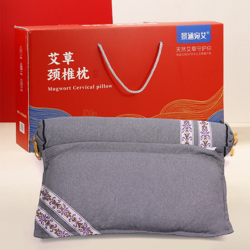 艾草颈椎枕礼盒套装颈椎组合枕手提礼盒商务随手礼·灰色枕-红盒