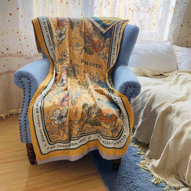 清仓纯棉多层纱布浴巾沙发巾·罗曼蒂克黄