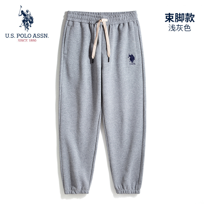 USPA春秋款华棉复牛奶丝卫裤K653·浅灰(束口)