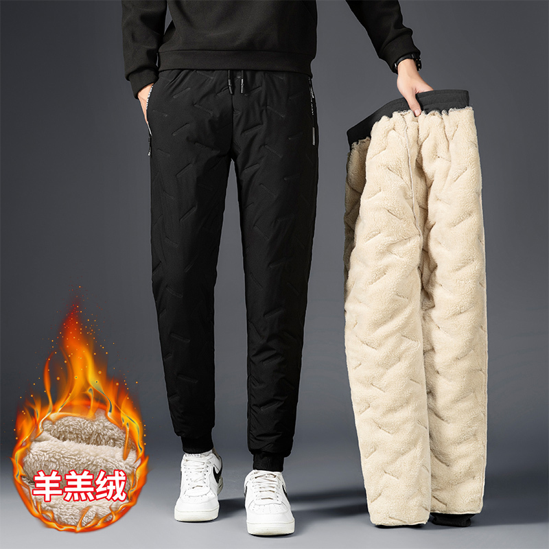 当前位置: 首页 > 服饰 > 男装 > 裤子 > 【热卖爆款/男女同款】时尚压纹加绒加厚松紧高腰拉链口袋休闲裤·黑色束口