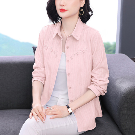 95纯棉新款气质提花刺绣开扣长袖衬衣·粉色
