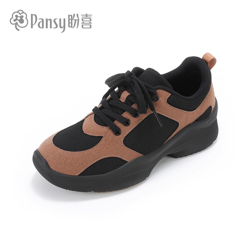 日本品牌Pansy舒适拼接女士休闲鞋·黑棕色