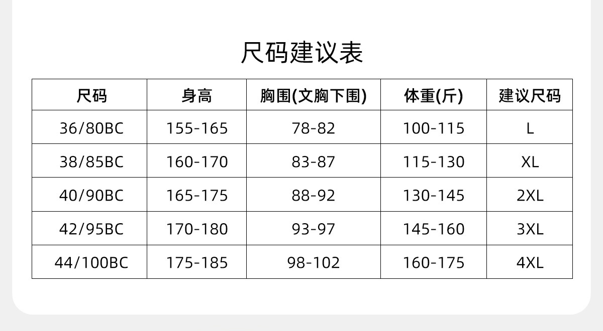 36/80 38/85 40/90 42/95 44/100 尺码表