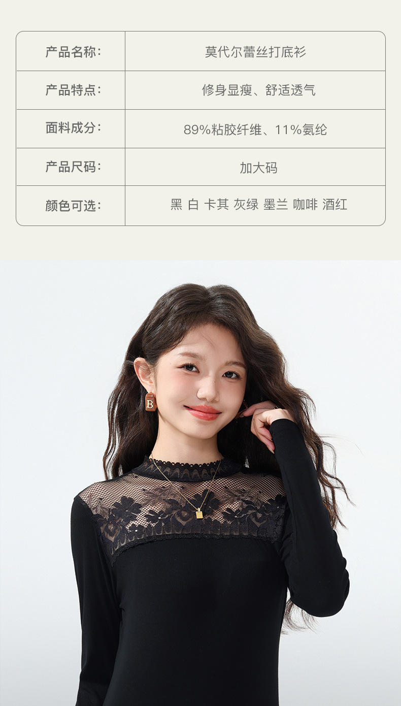 丁摩 蕾丝上衣女长袖秋冬新款大码女装半高领网纱内搭打底衫洋气衫5ZF-2510·墨兰