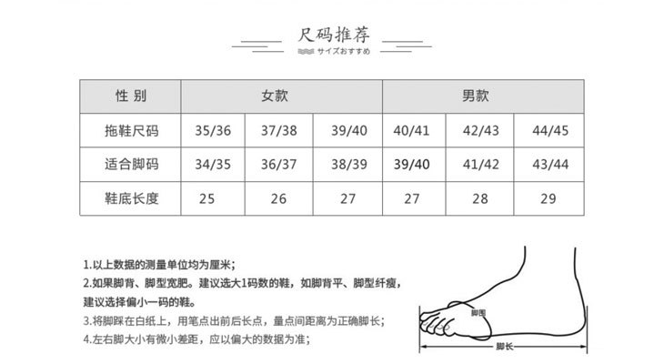 40/41(适合39/40脚型) 42/43(适合41/42脚型) 44/45(适合43/44脚型) 尺码表