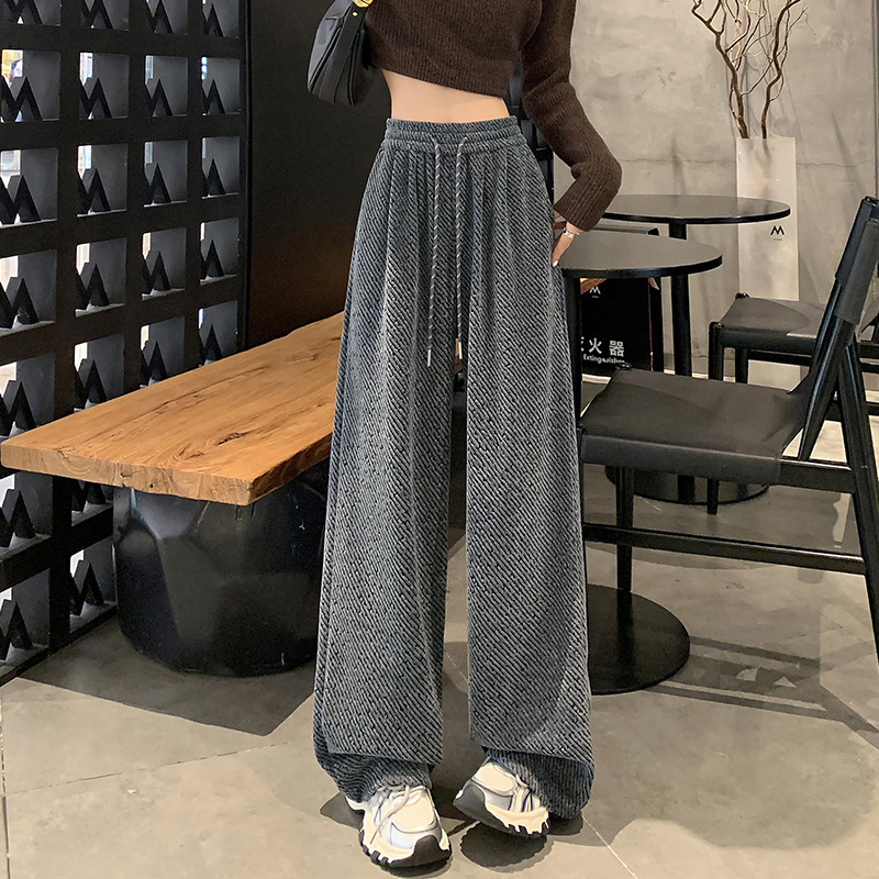 亮丝雪尼尔针织垂感阔腿裤A9026#·深灰色