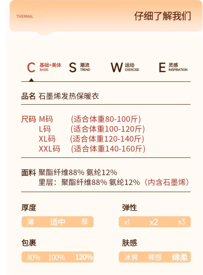 【石墨烯发热】2件赛蔻厚绒罩杯一体保暖衣8867长袖·肤色