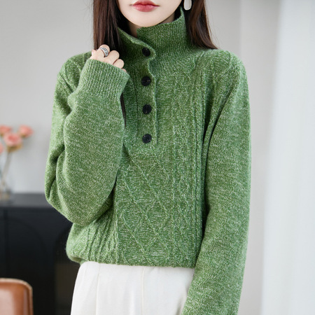 特舒冬款加厚翻领绞花毛衣TS-2130·香草绿