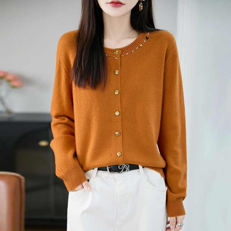 特舒冬款加厚重工手工钉珠圆领毛衣TS-409·南瓜橘