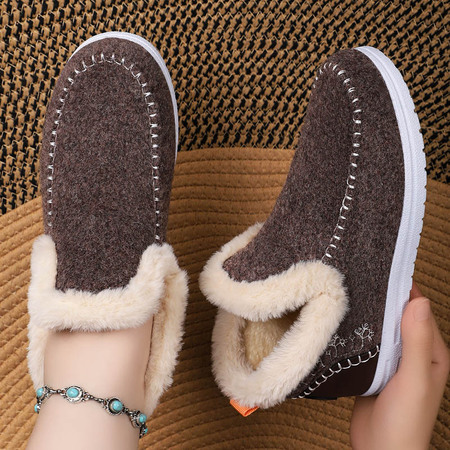 【爆款特价】时尚百搭加绒加厚特大码棉靴·咖啡色(PE拉链袋装)