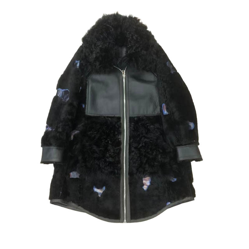 提格拉多羊皮毛一体中长款皮草外套·黑色