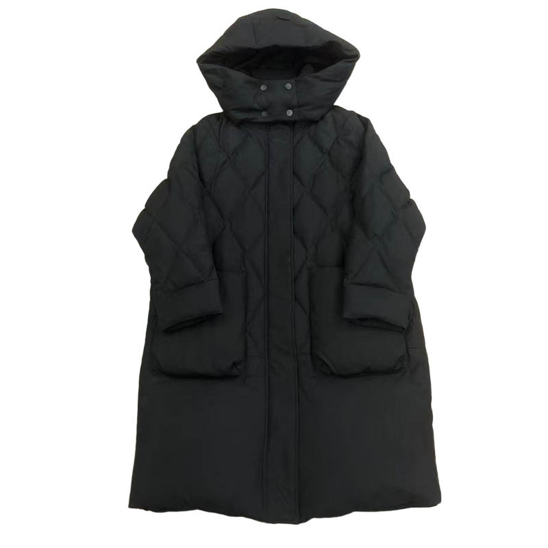 【暖纱系列】LP款中空纱连帽中长款鹅绒服·黑色