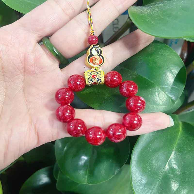 【映时珠宝】三号井晶体砂朱砂手机链十全十美10MM