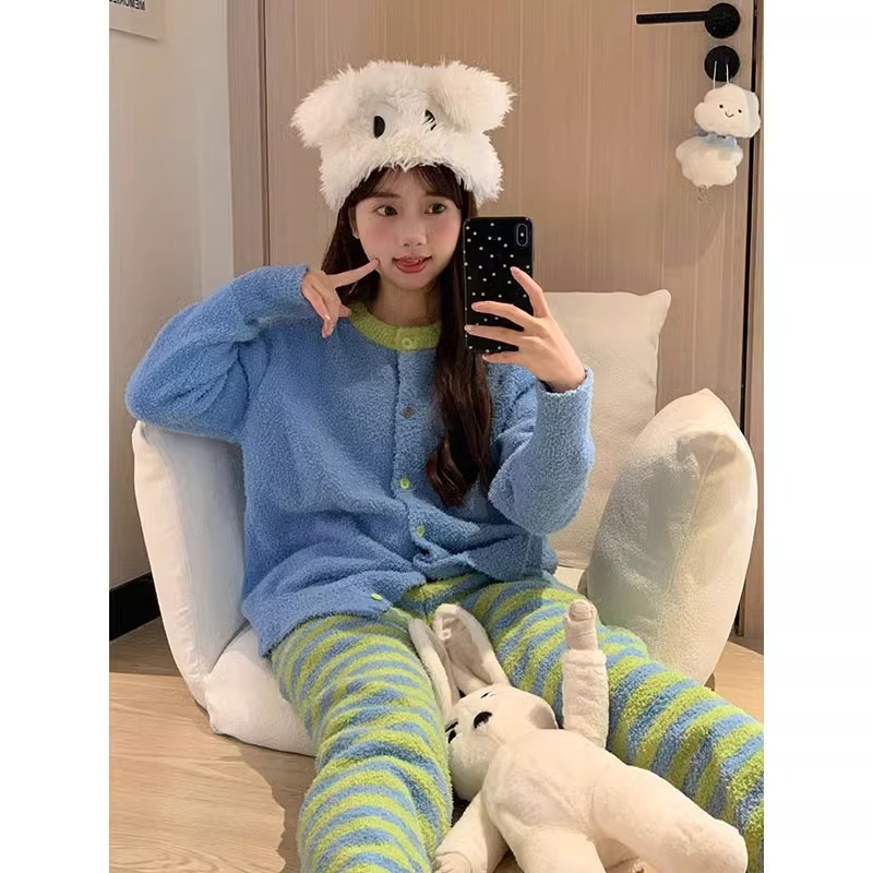 丽鸟儿新款韩版高级条纹珍贝绒睡衣休闲家居服可外穿·FSZY-韩版高级条纹图片色
