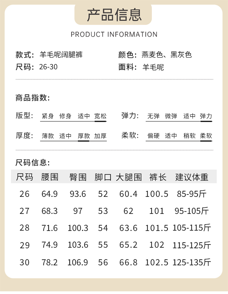 当前位置: 首页 > 服饰 > 女装 > 裤子 > 【大牌代工厂出品】和顺圣加厚羊毛呢后松紧腰阔腿裤3072·黑灰色