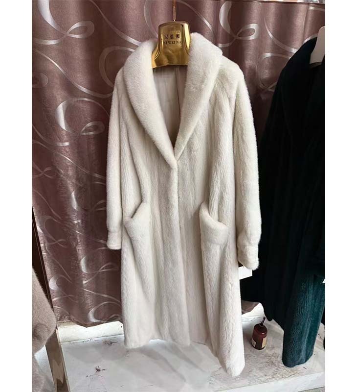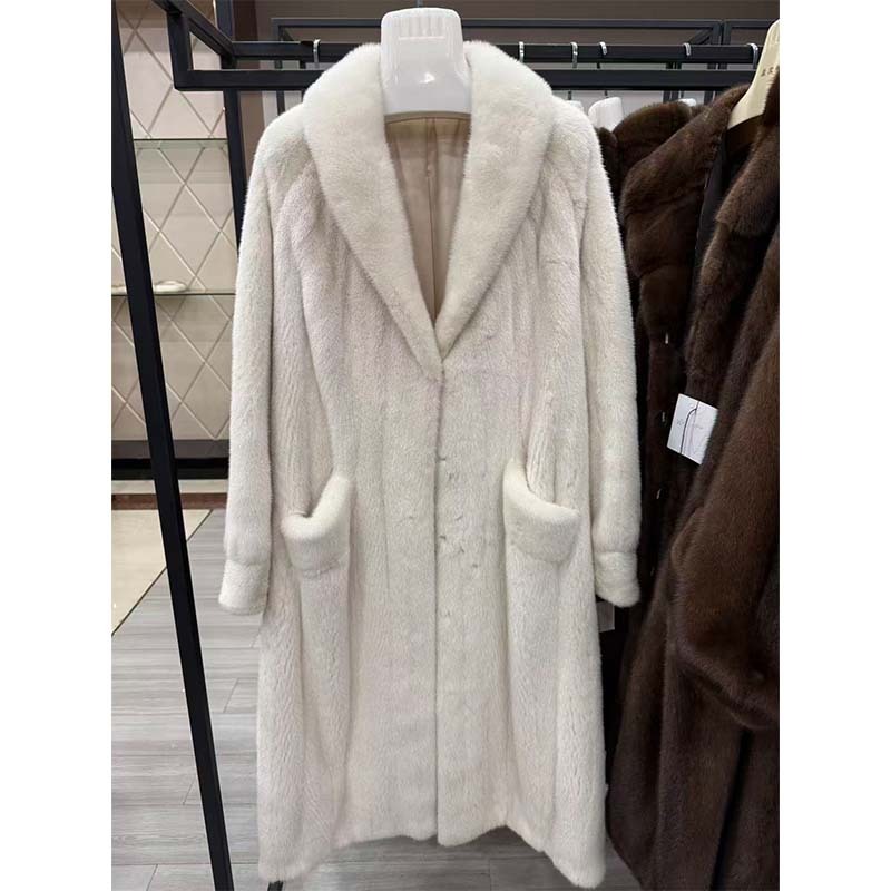 优梵奇丹麦进口青果领白色水貂大衣·白色