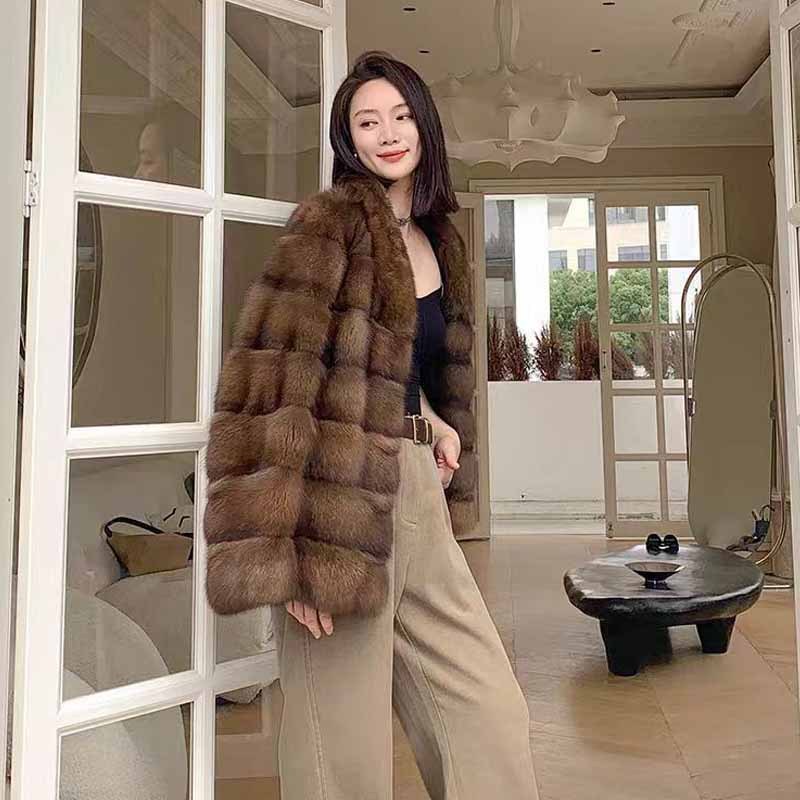 米兰秀款稀有本色满天星紫貂貂皮大衣·本色
