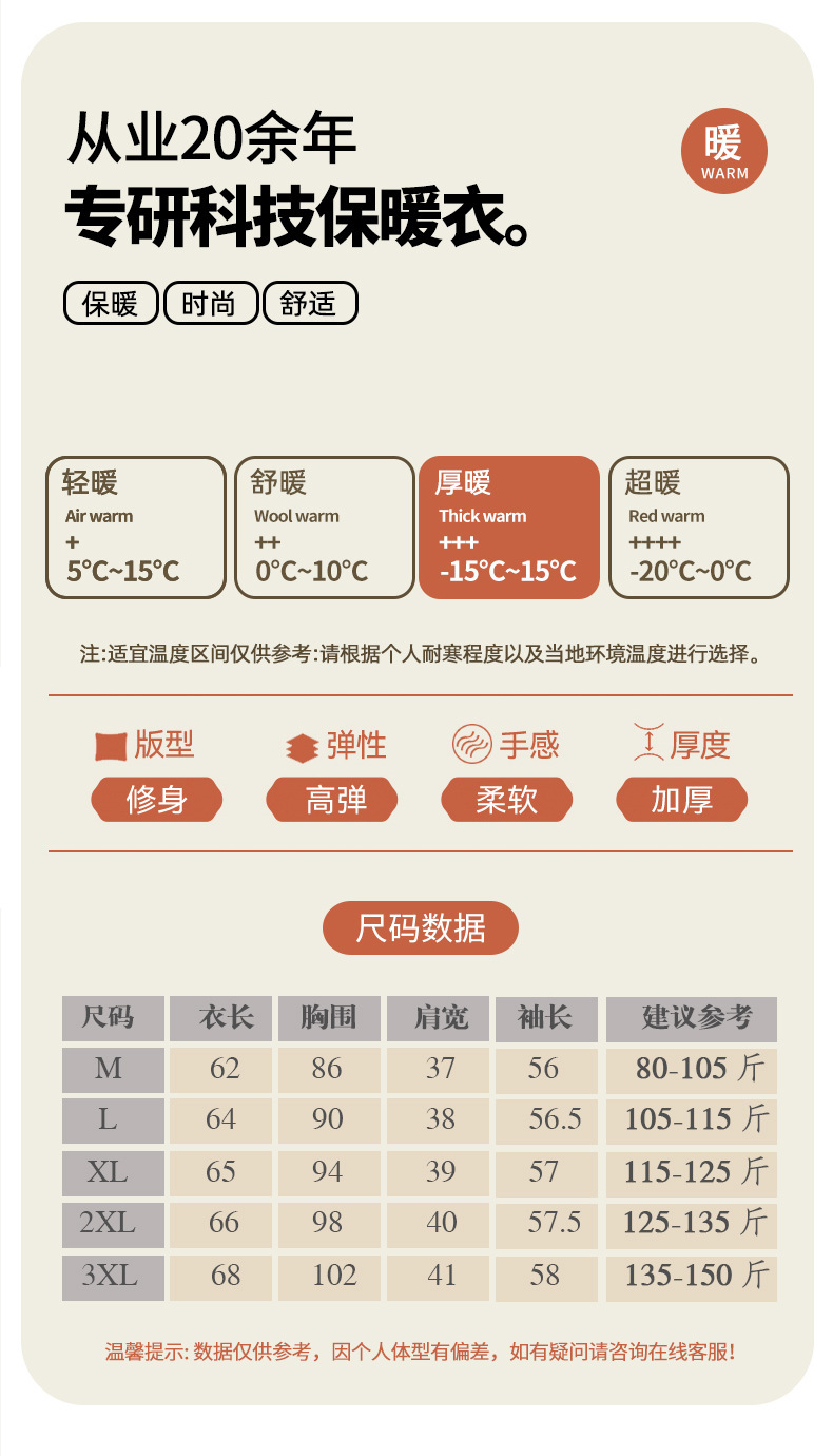 当前位置: 首页 > 服饰 > 内衣 > 保暖内衣 > 【蚕丝羊毛】修娴轻暖绒拼接立领超弹打底衫M606·暖杏