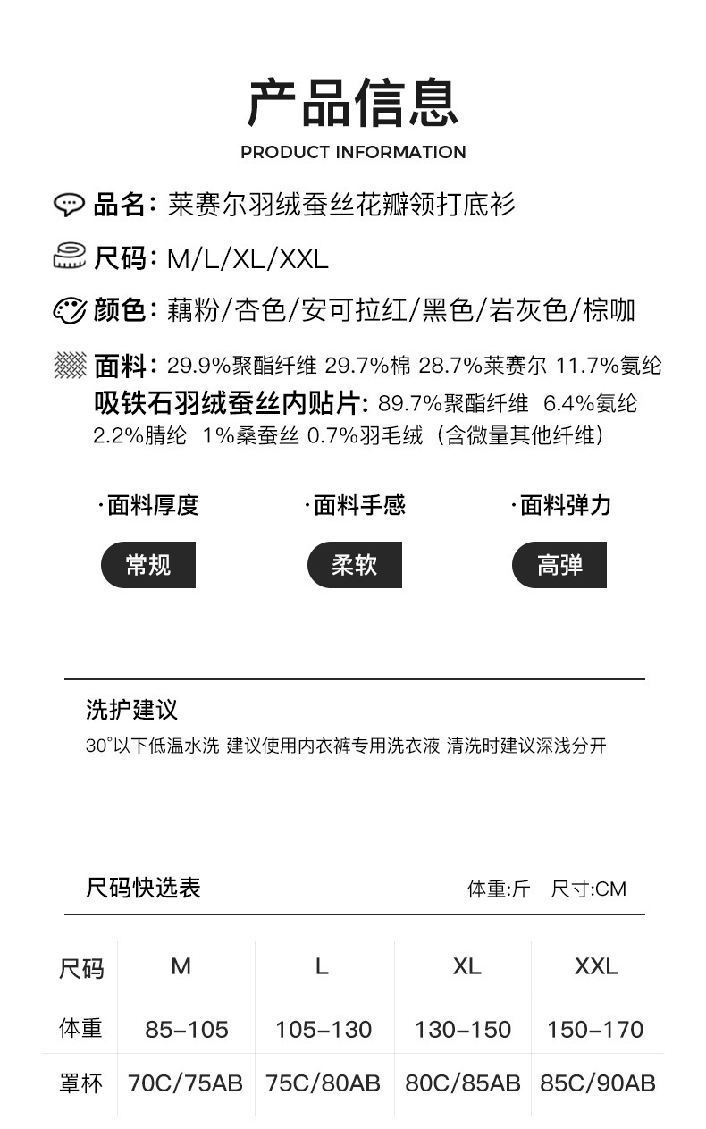 【羽绒蚕丝】赛蔻莱赛尔棉花瓣领保暖打底衫8893长袖·杏色
