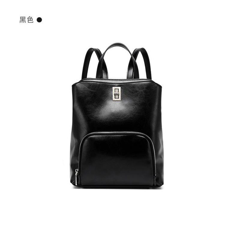 雀说 真皮大容量简约通勤背包复古牛皮双肩包6149-D·黑色