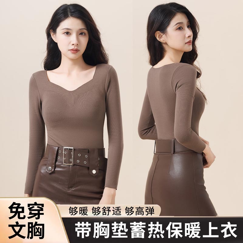 当前位置: 首页 > 服饰 > 内衣 > 保暖内衣 > 【免穿内衣】秋冬睡眠罩杯隐形V领无痕黑科技蓄热保暖衣·咖啡